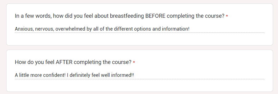 When I was pregnant with my first child, I took a prenatal breastfeeding class. It was an in person class and I was 38 weeks pregnant at the time.